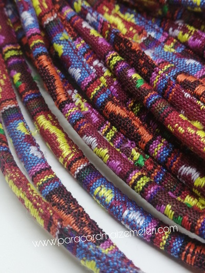Bileklik ve Boyun Askı Kordon İpi Simli Pembe Turuncu Renk