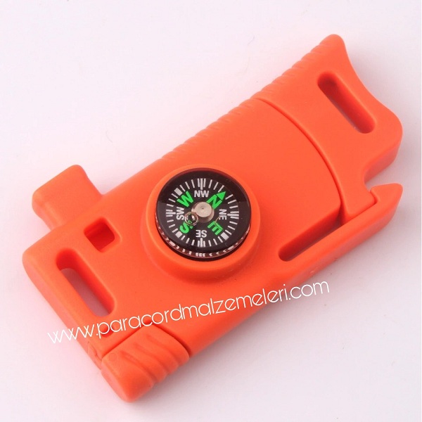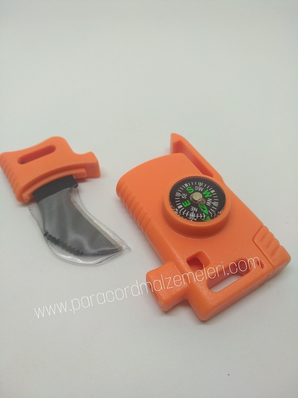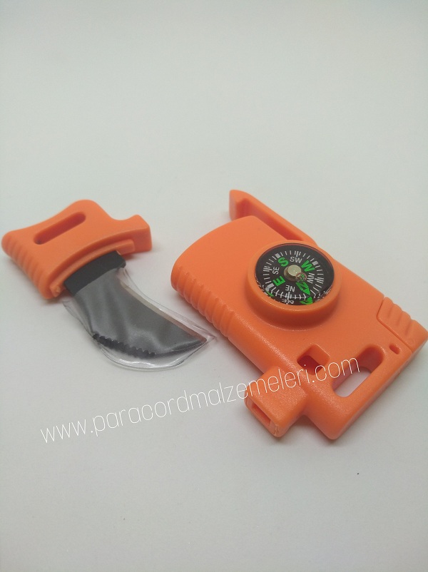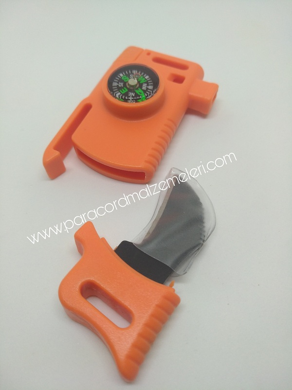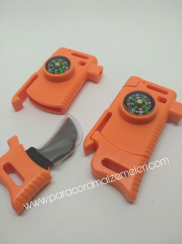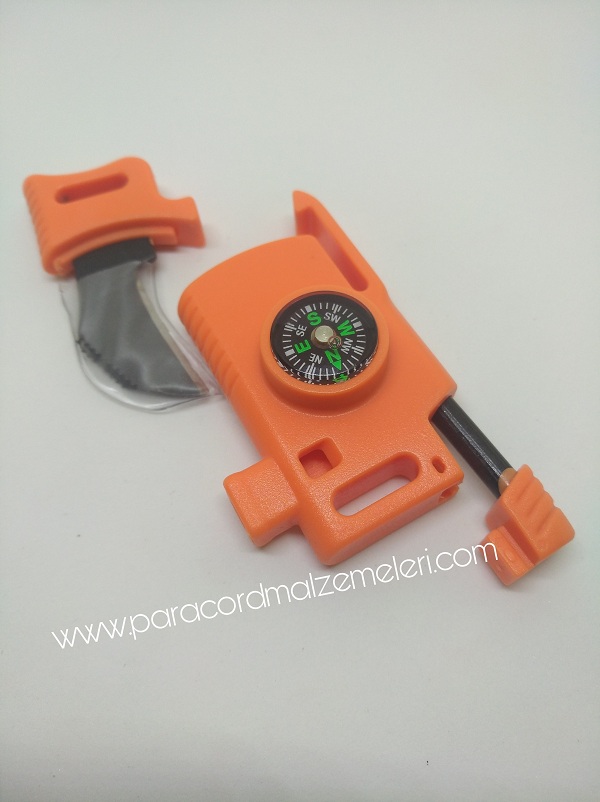 Ateş başlatıcı ,Düdük ,Pusula ve Bıçak Özellikli Klips Turuncu Renk