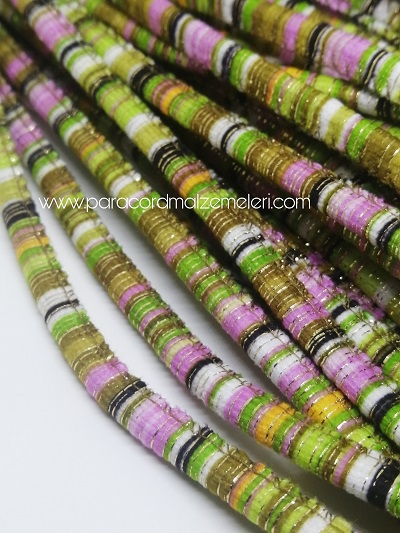 Bileklik ve Boyun Askı Kordon İpi Simli Yeşil Pembe Renk