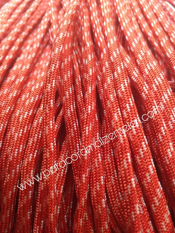 Paracord 550 İp, Paracord Paraşüt Bileklik İpi Kırmızı Renk Beyaz Şerit