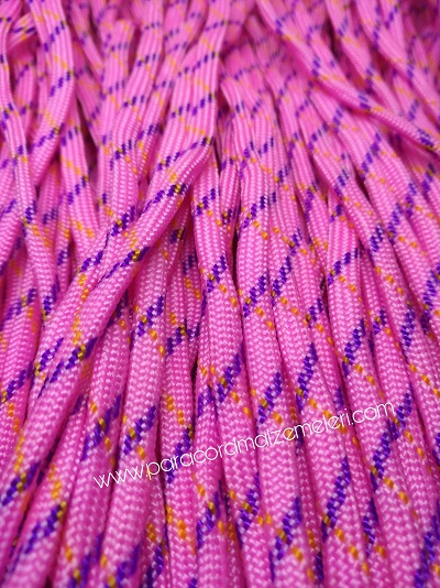 Paracord 550 İp, Paracord Paraşüt Bileklik İpi Pembe Renk Mor-Turuncu Şerit