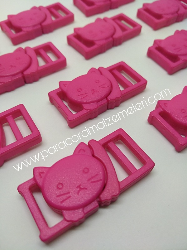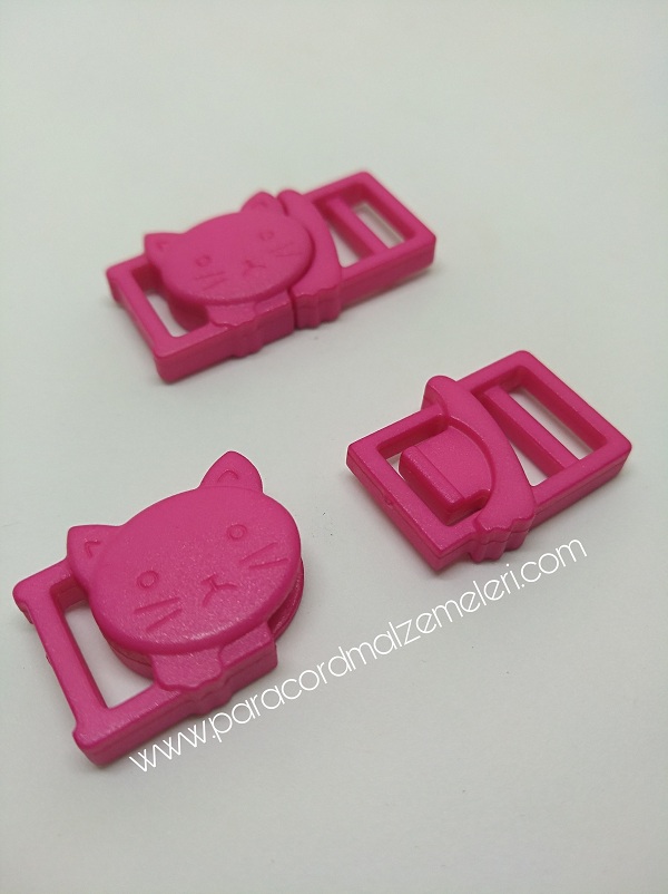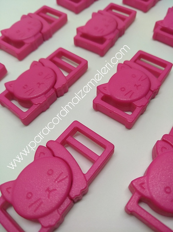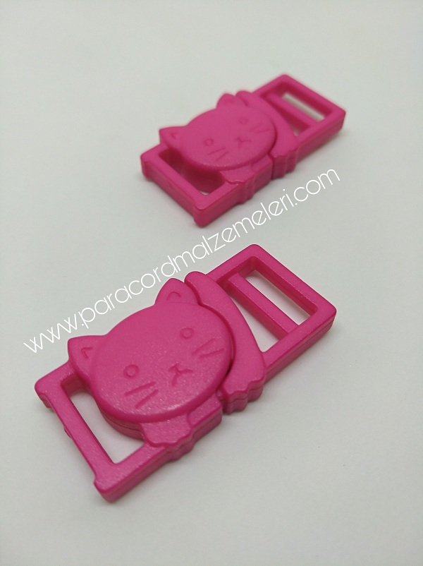 Paracord İp Bileklik Kedi Toka Klips Koyu Pembe Renk
