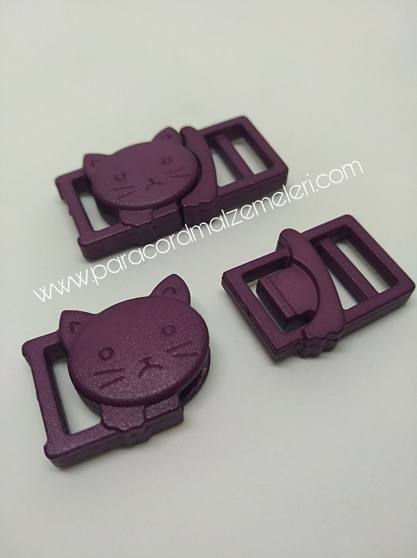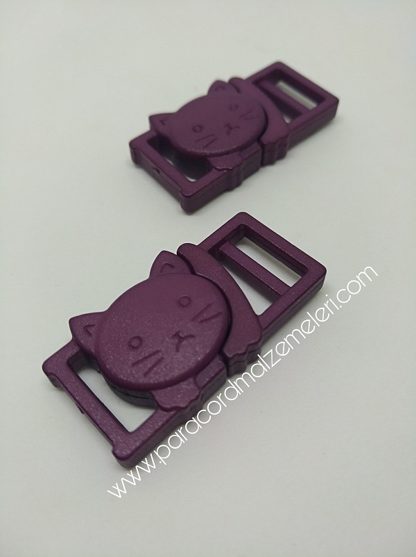 Paracord İp Bileklik Kedi Toka Klips Mürdüm Renk