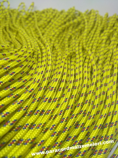Paracord İp , Paracord Bileklik İpi Sarı Renk Kırmızı Mavi Şerit 2 mm