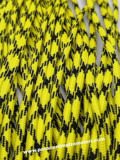 Paracord İp, Paracord Paraşüt Bileklik İp Sarı Siyah Burgu Desen