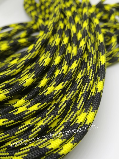 Paracord İp, Paracord Paraşüt Bileklik İp Sarı Siyah Çapraz Desen