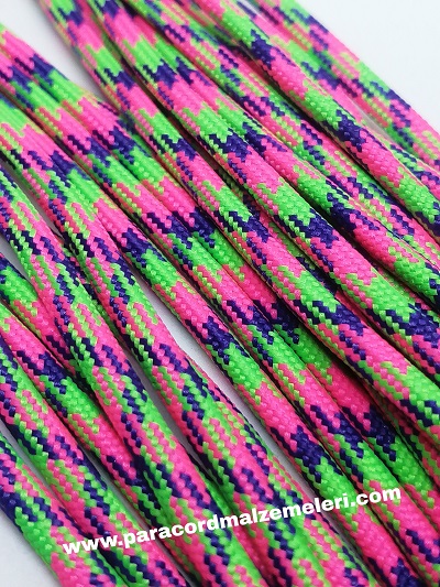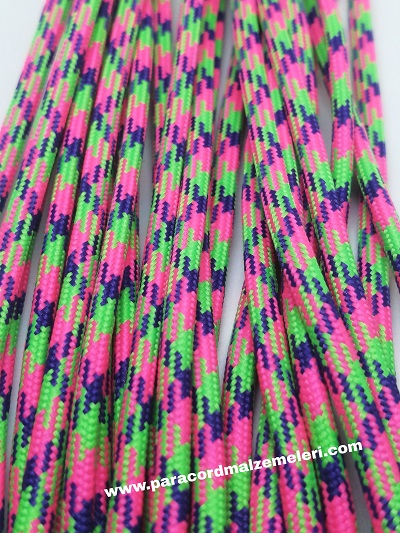 Paracord İp, Paracord Paraşüt Bileklik İpi Neon Pembe Neon Yeşil Mavi Şerit