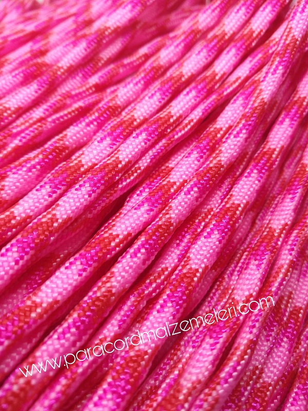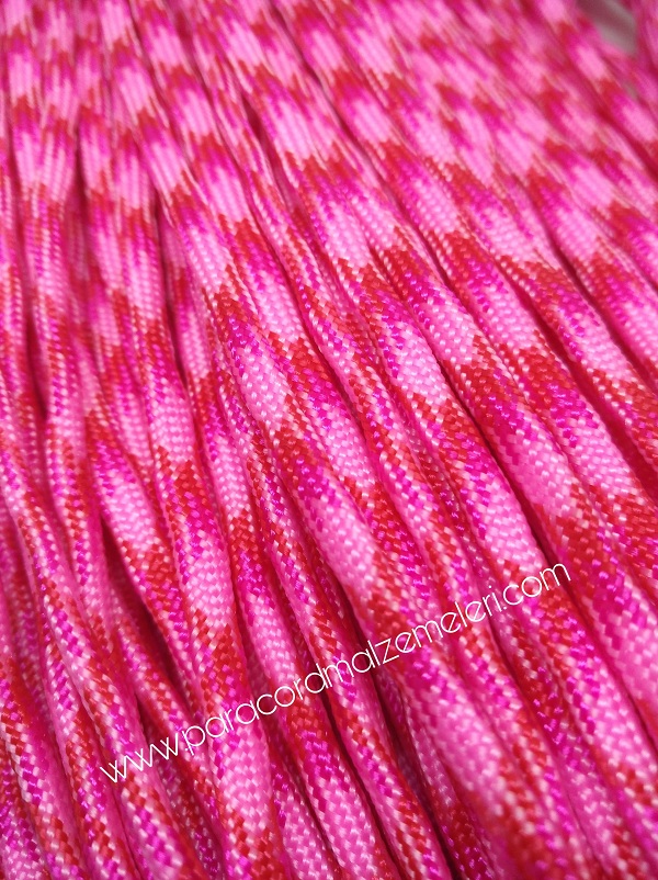 Paracord 550 İp, Paracord Paraşüt Bileklik İpi Açık Pembe-Koyu Pembe Renk