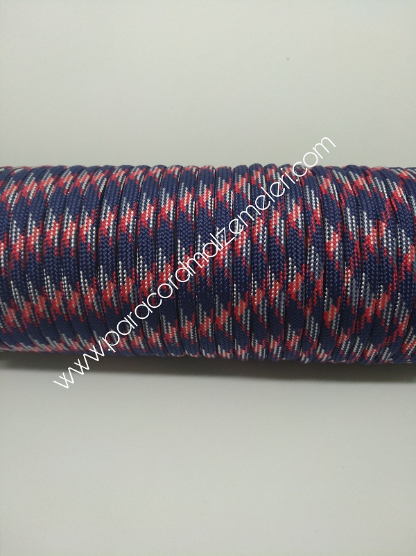 Paracord 550 İp, Paracord Paraşüt Bileklik İpi Lacivert-Kırmızı-Beyaz Renk